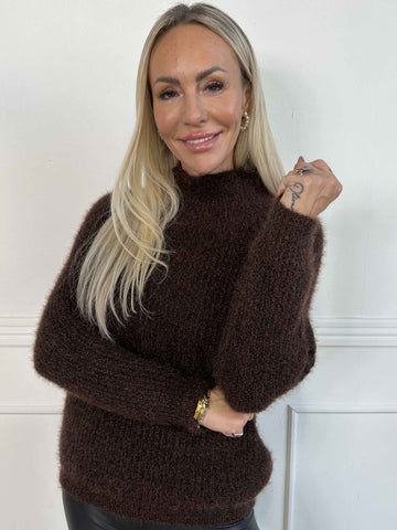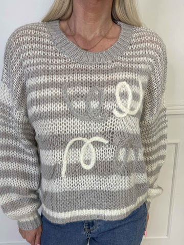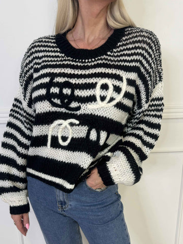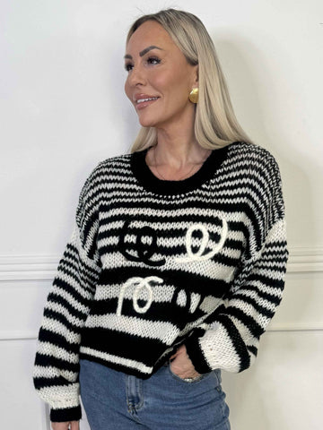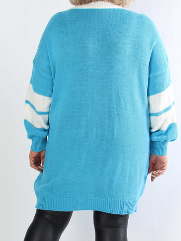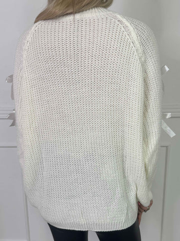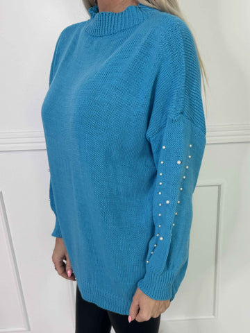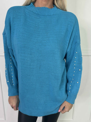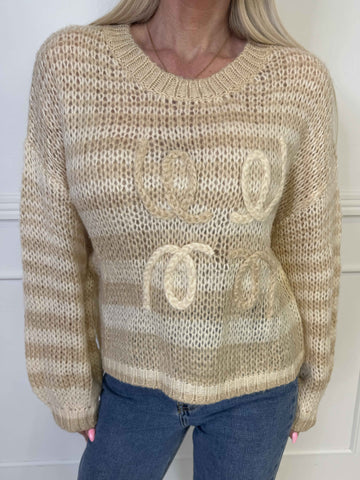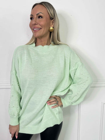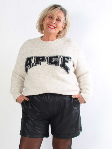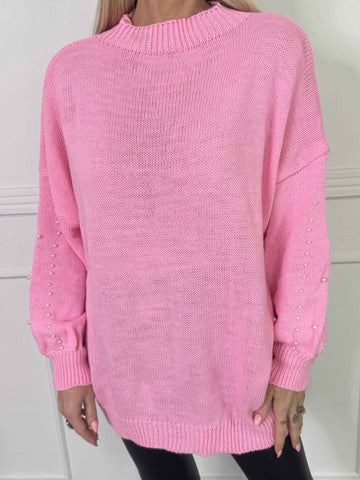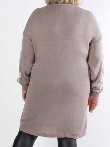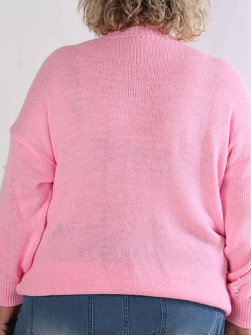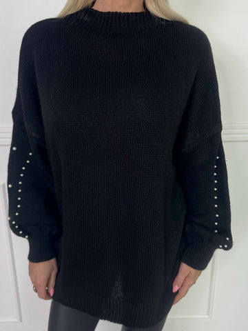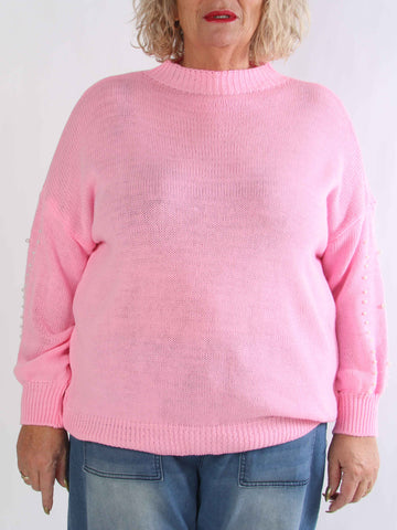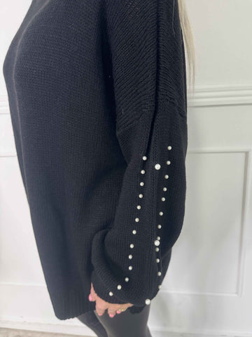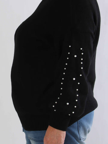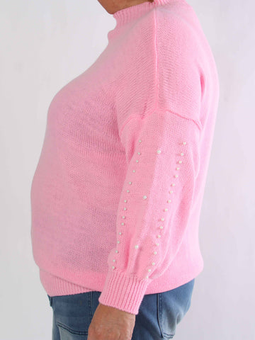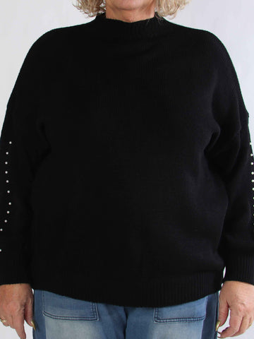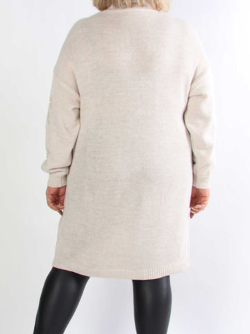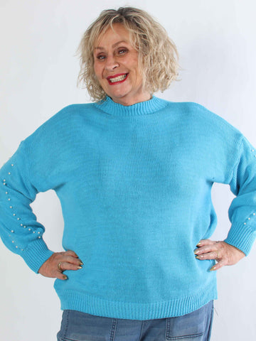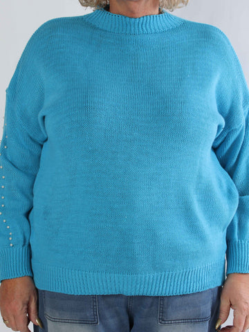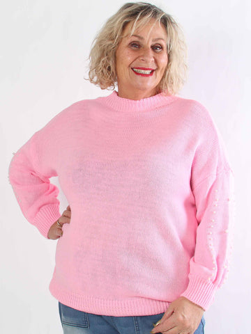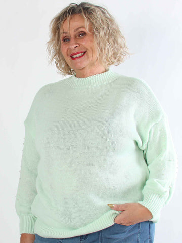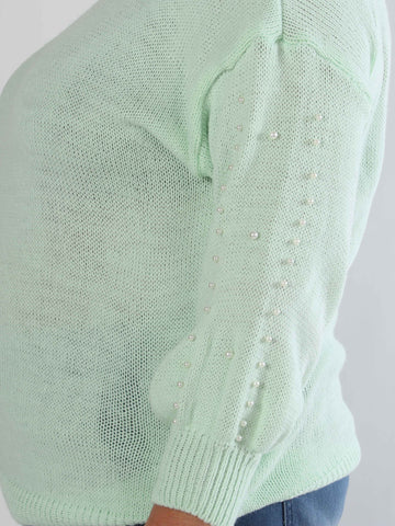 Viviane - Plus size strik detaljeret med hvide perler og ballonærmer