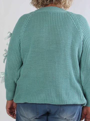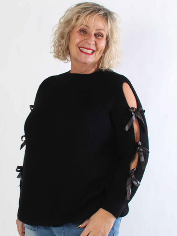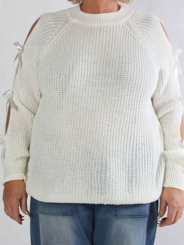 Birtha - Plus size strikbluse med små åbninger og sløjfer på ærmet