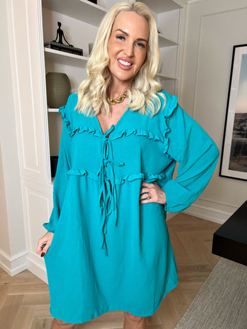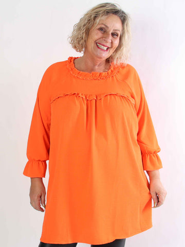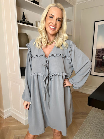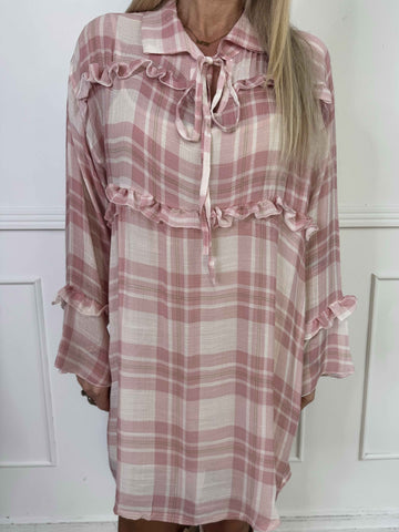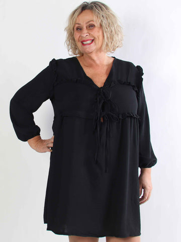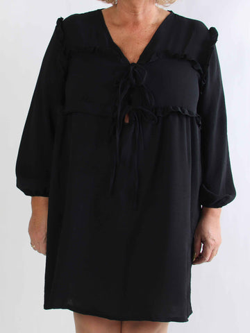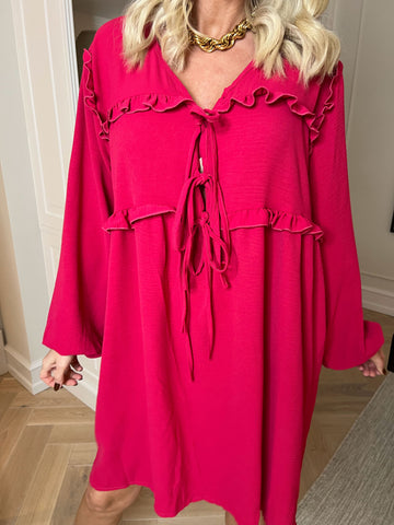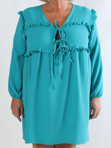 Catalina - Plus size tunikakjole i viskose med flæser og sløjfer