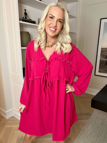 Catalina - Sød tunikakjole i viskose med flæser og sløjfer
