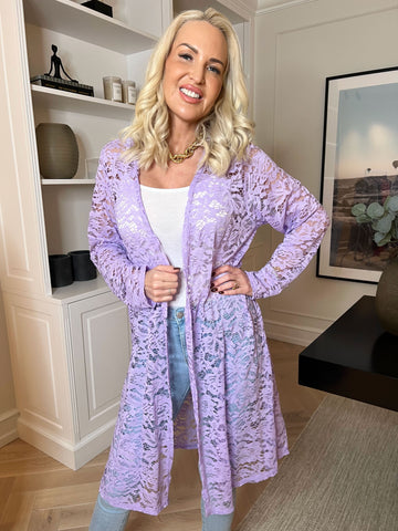 Hillary - Hæklet cardigan med hulmønster i bomuldsblanding
