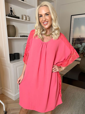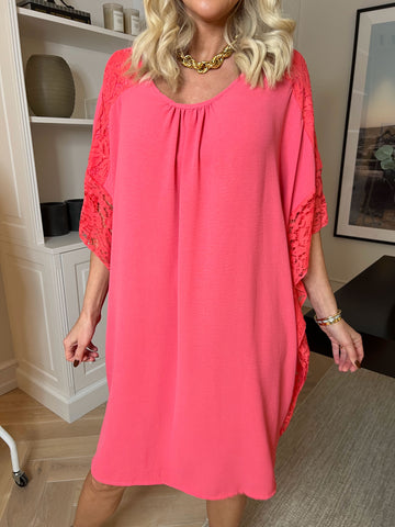 Frazzine - Kjole i løs pasform med blondekant ved ærmerne