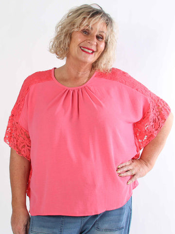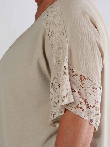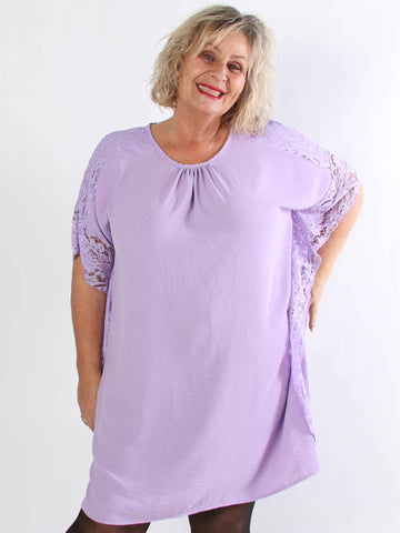 Frazzine Shirt - Plus size tunika i løs pasform med blondekant ved ærmerne