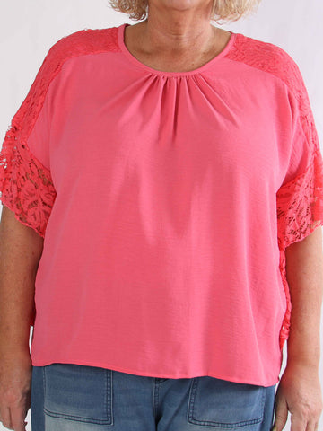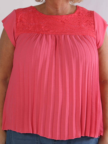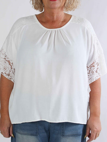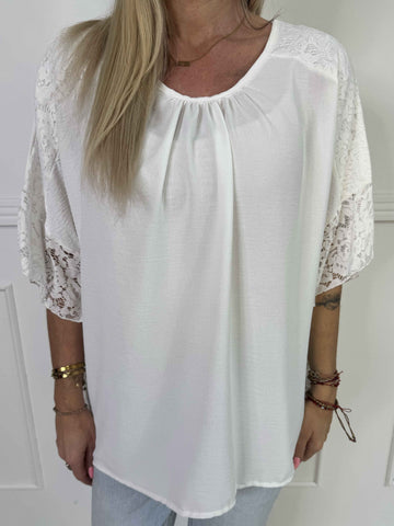 Nancy Lace Shirt - Sød plus size tunika med plisseringer og blonde