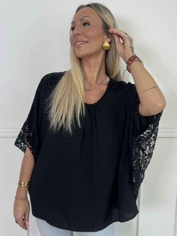 Frazzine Shirt - Tunika i løs pasform med blondekant ved ærmerne