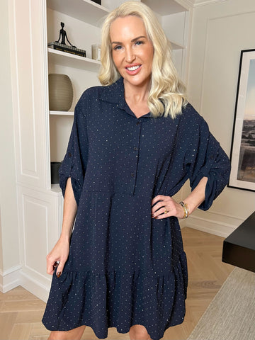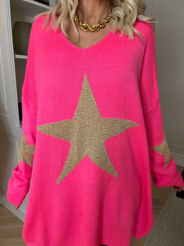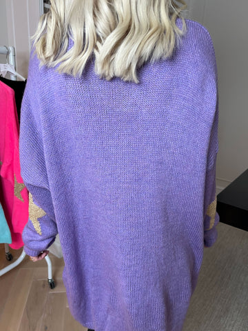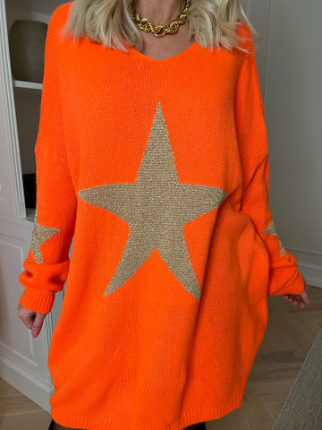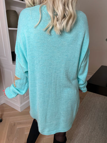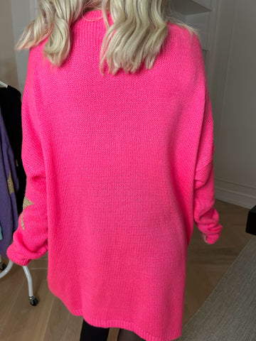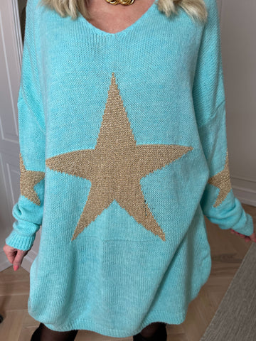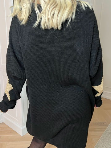 Nikola - Strikkjole med guldstjerner og v-udskæring