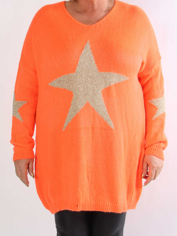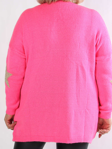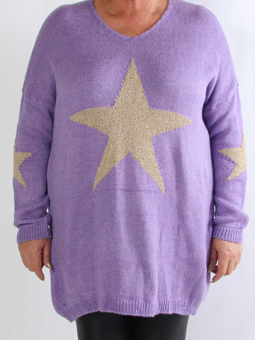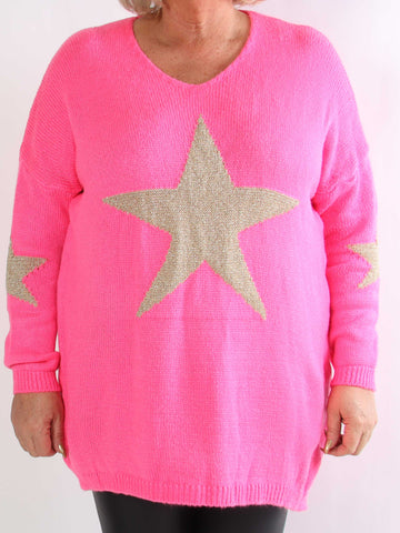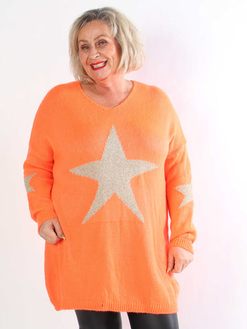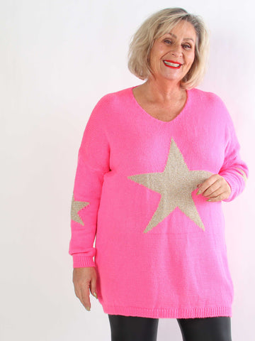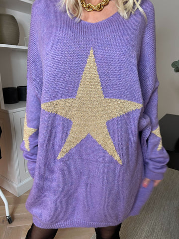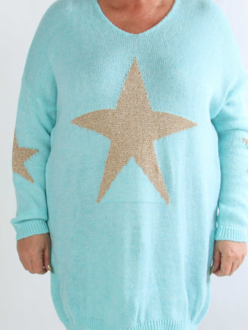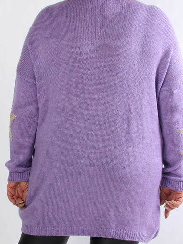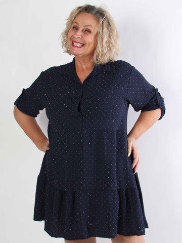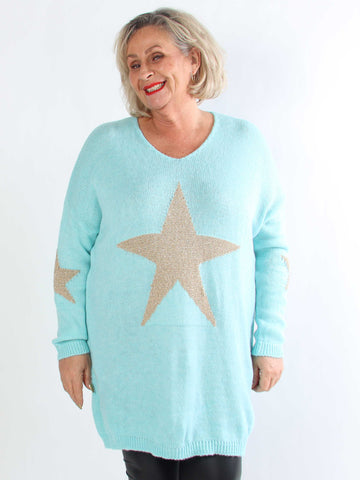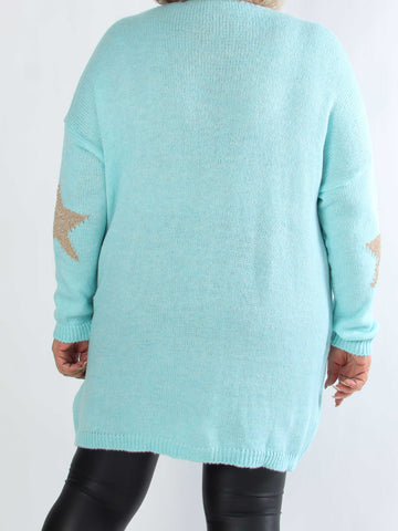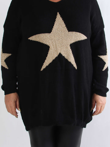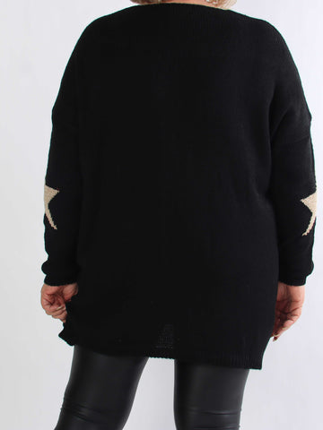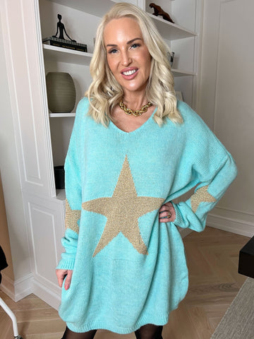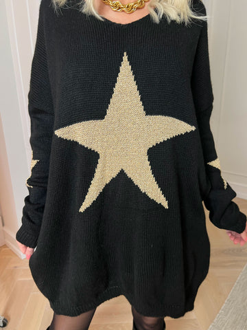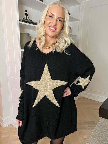 Nikola - Plus size strikkjole med guldstjerner og v-udskæring