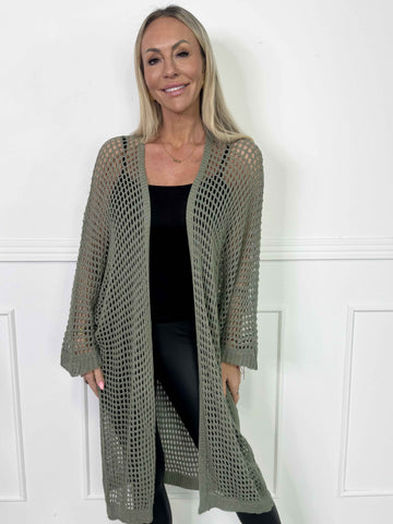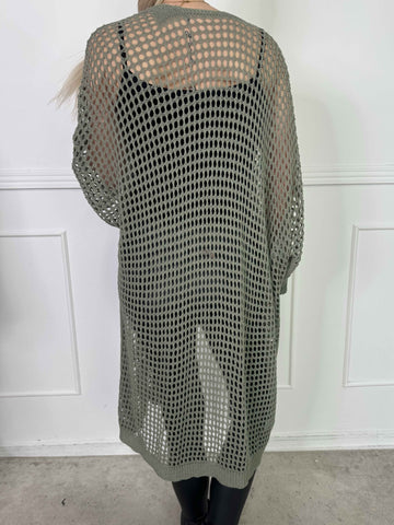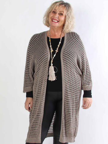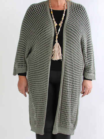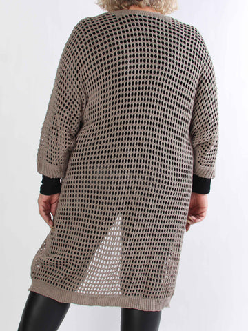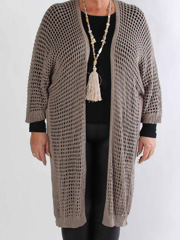 Hillary - Hæklet plus size cardigan med hulmønster i bomuldsblanding