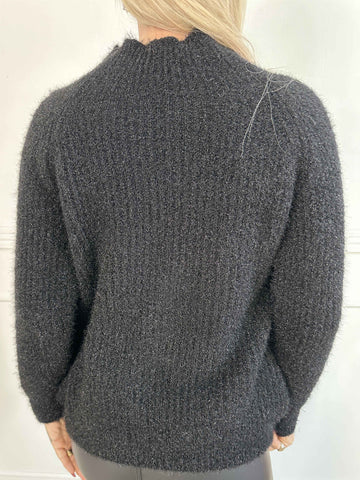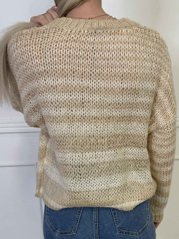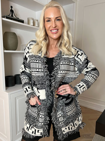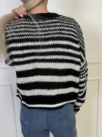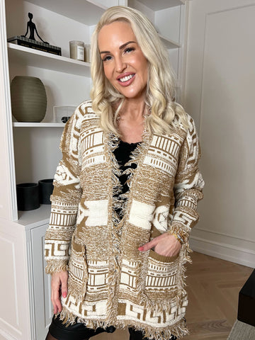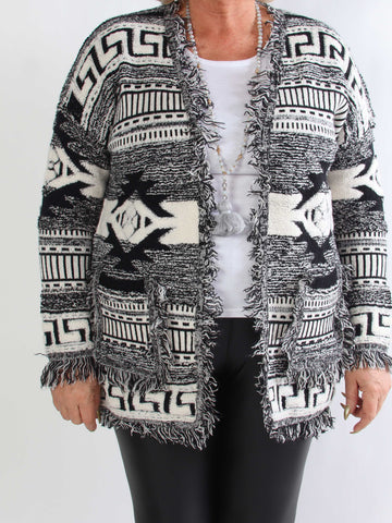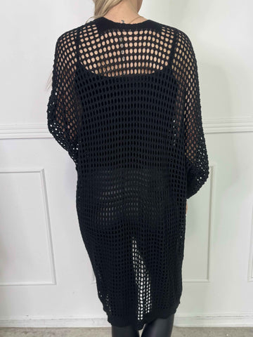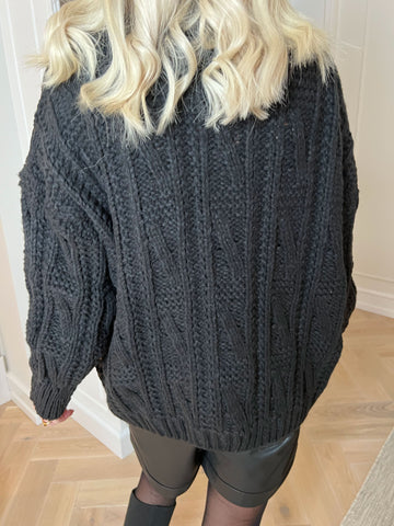 Trisse - Tyk strikcardigan med mesh og pailletter