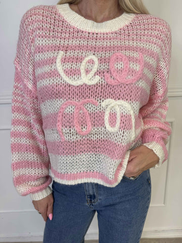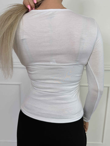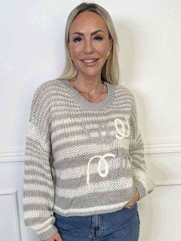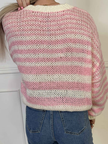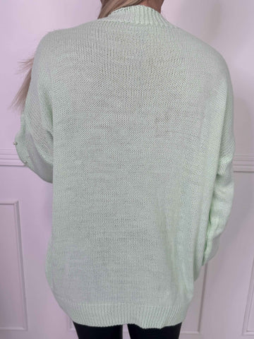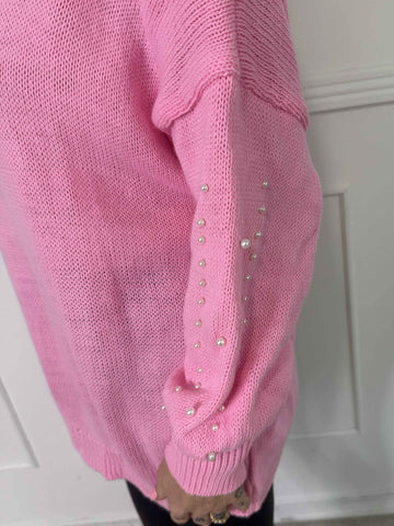 Viviane - Strik detaljeret med hvide perler og ballonærmer