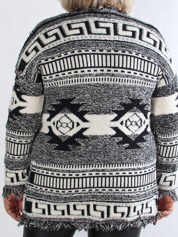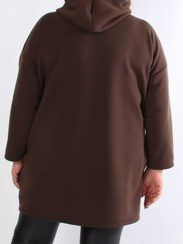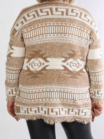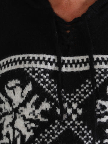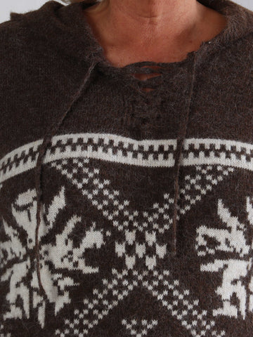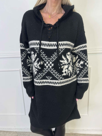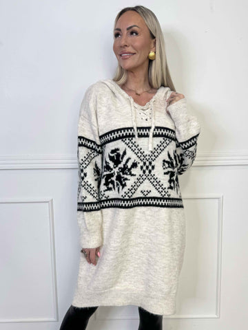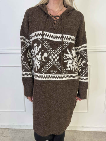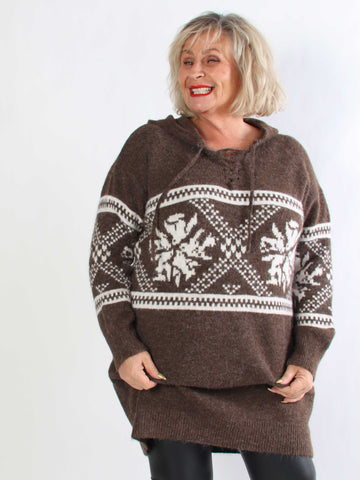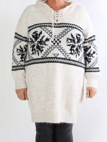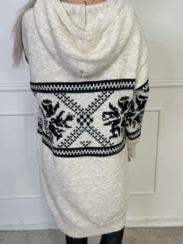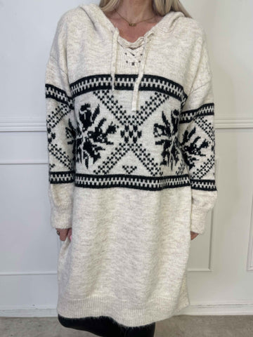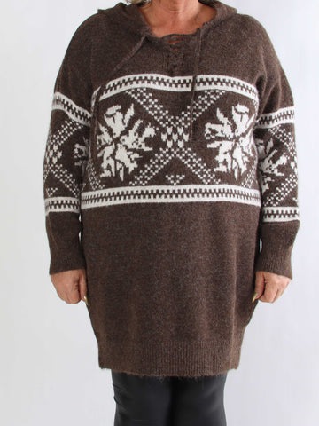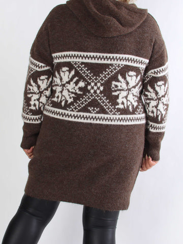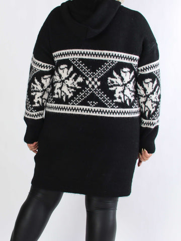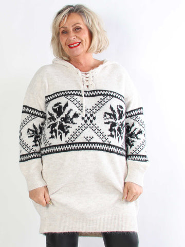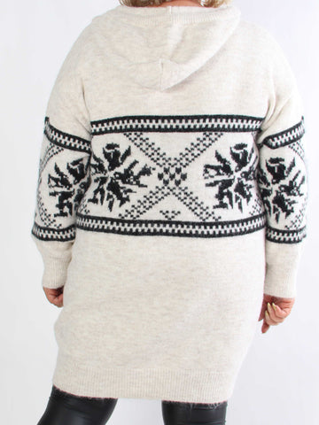 Veni Long - Blød mønstret strikkjole i plus size med hætte