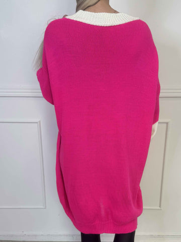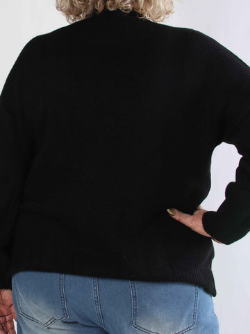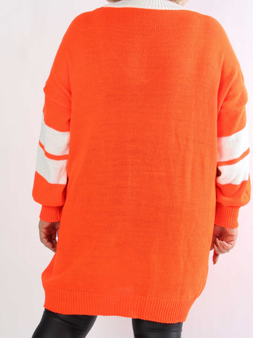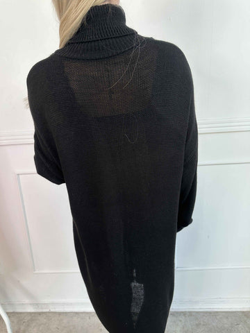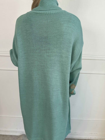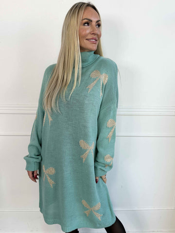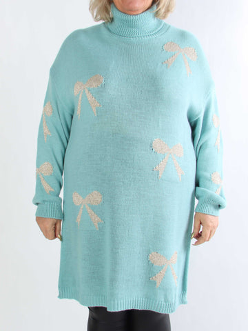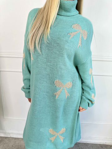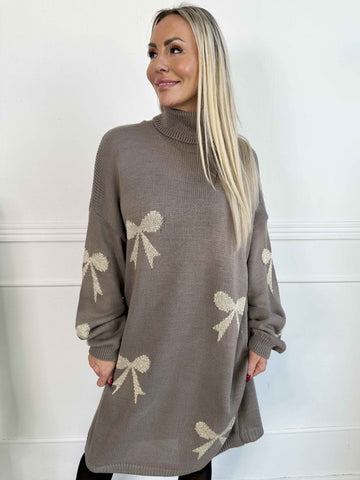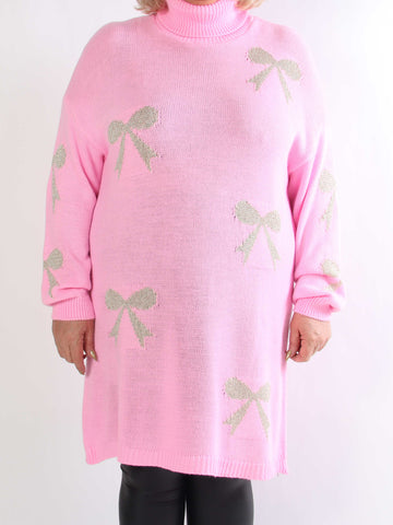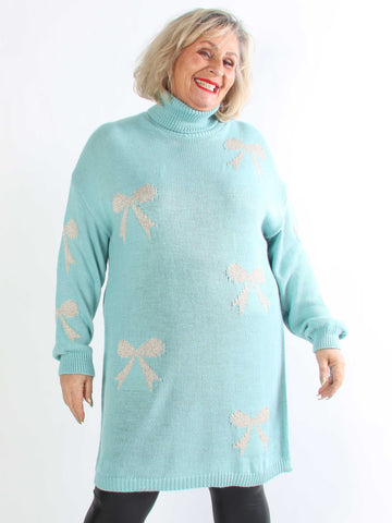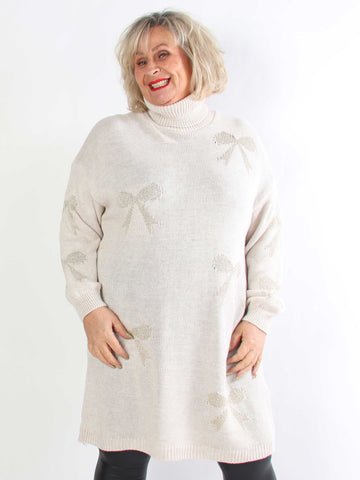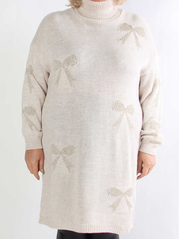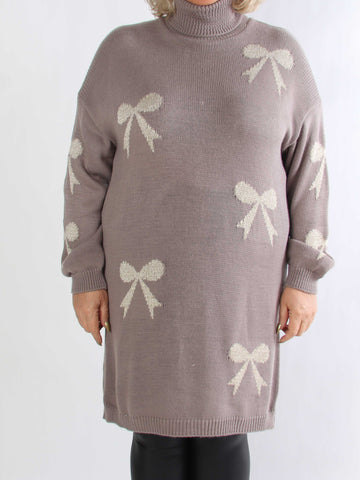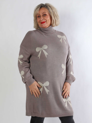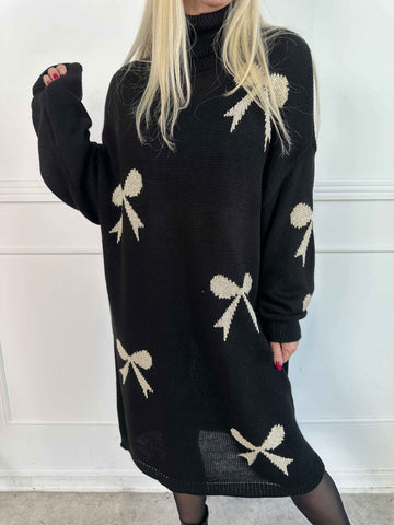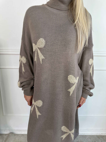 Vallie - Plus size strikkjole med guldsløjfer og rullekrave
