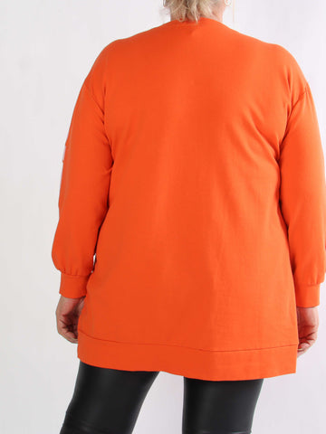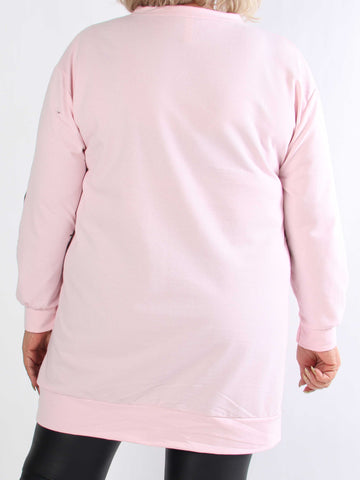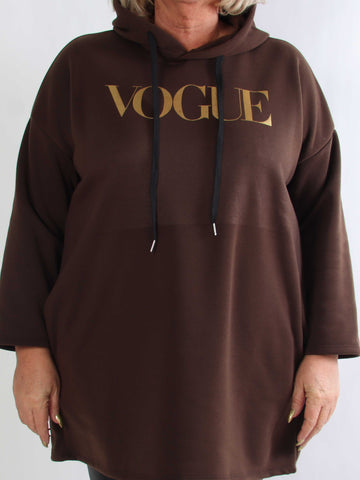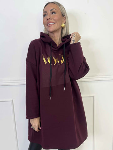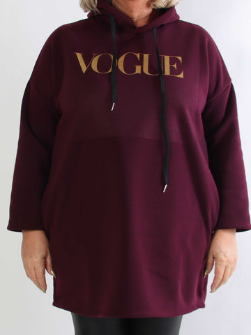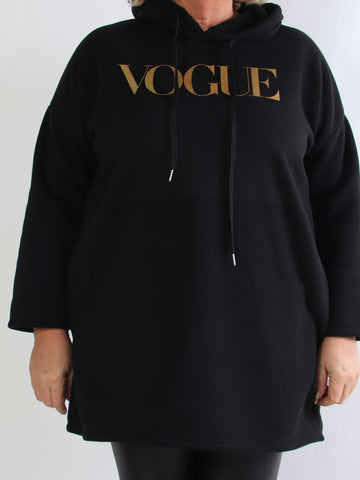 Perrine - Plus size hoodiekjole med VOGUE tryk med lommer