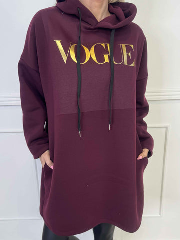 Perrine - Hoodiekjole med VOGUE tryk med lommer