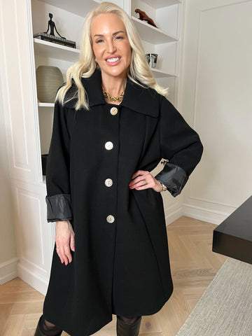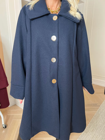 Yalena - Klassisk plus size frakke i A-facon med lommer