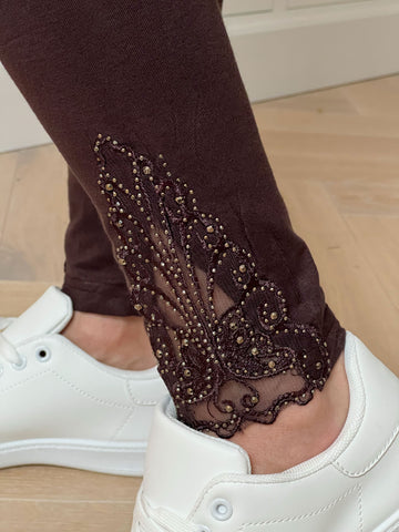 Jackie - Bløde leggings i viskose med blonde og similisten