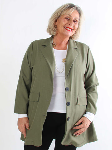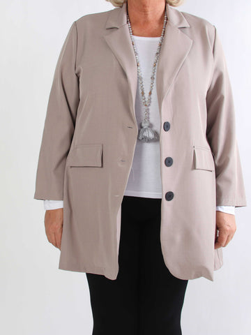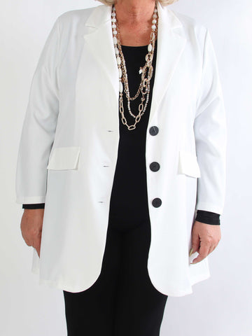 Lanthe Long Plain - Lang ensfarvet plus size blazer