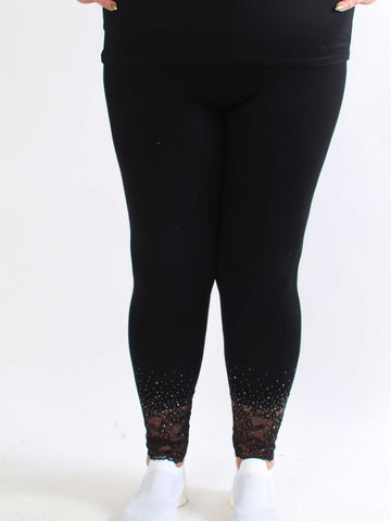 Kia - Bløde leggings i viskose med blondekant og similisten
