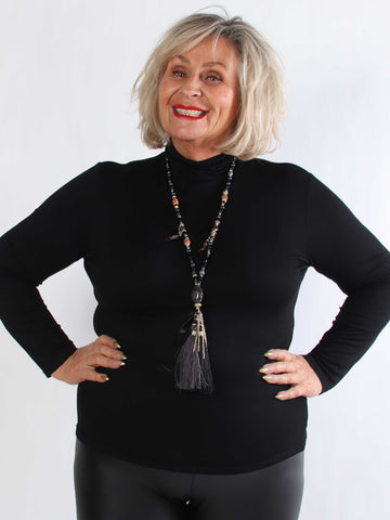 Noras - Langærmet basis bluse i viskose med turtleneck