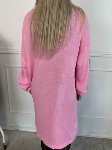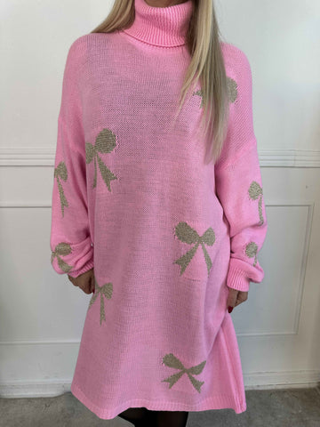 Vallie - Sød strikkjole med guldsløjfer og rullekrave