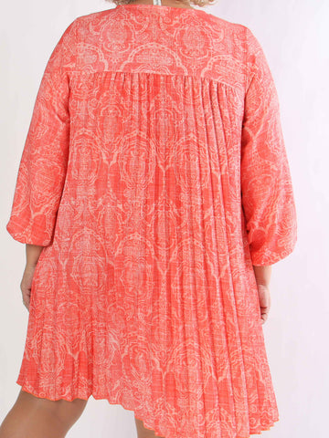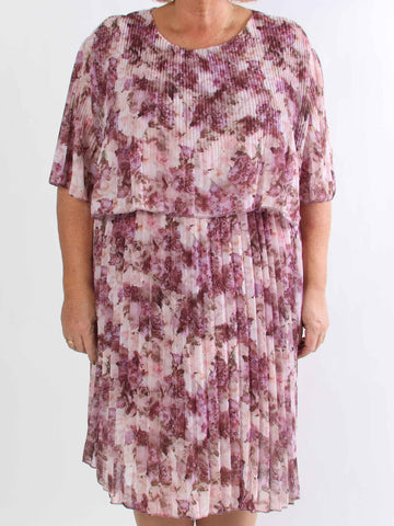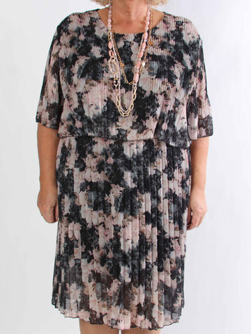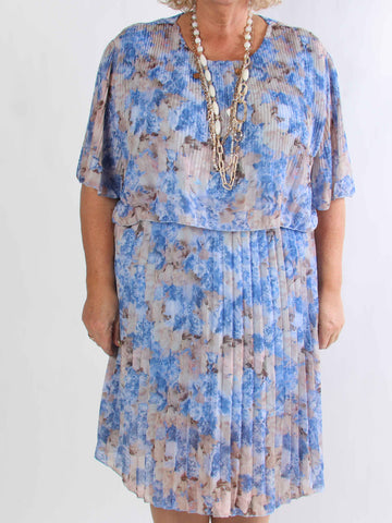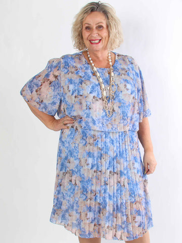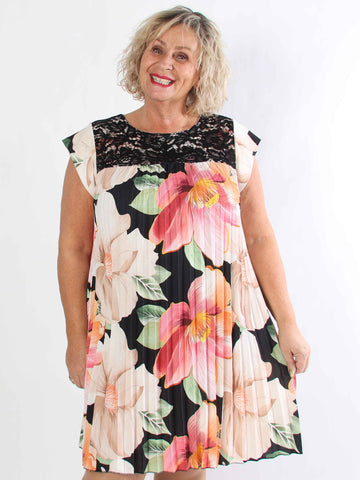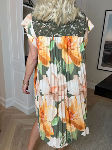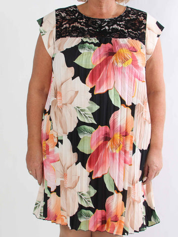 Nancy Lace Flower Short - Blomstret plus size kjole med plisseringer og lommer