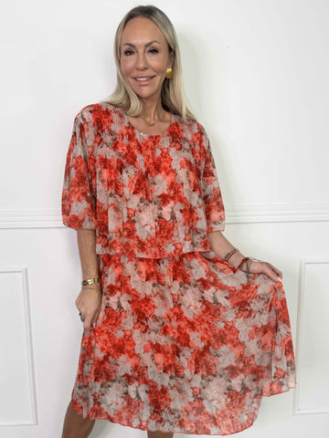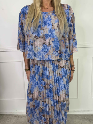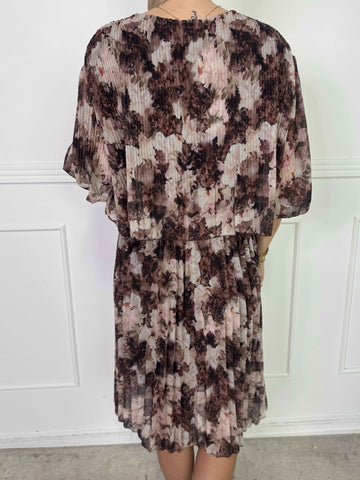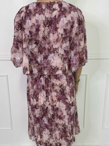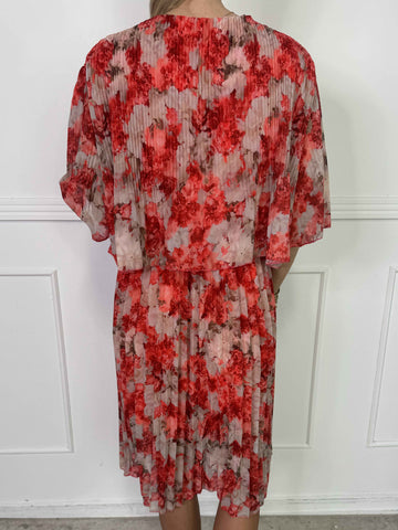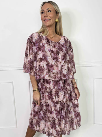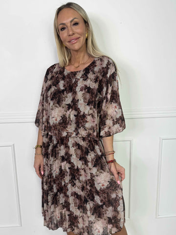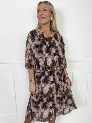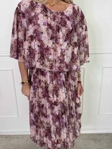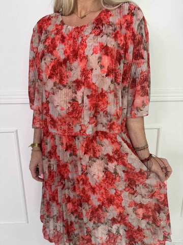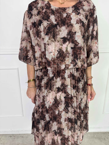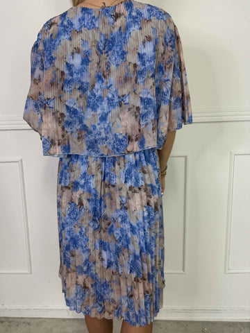 Kristina Flower - Sød blomstret plisseret kjole med flæselag