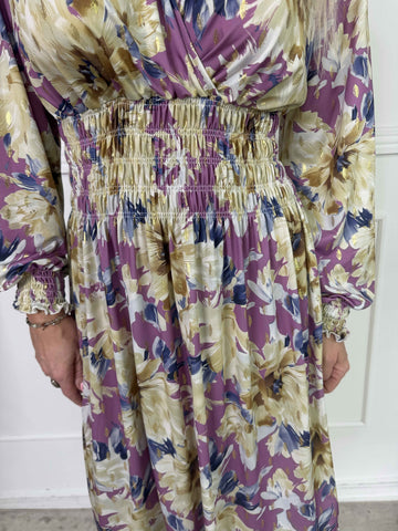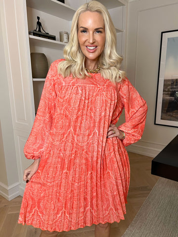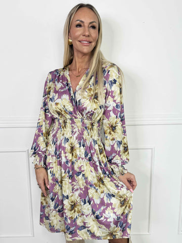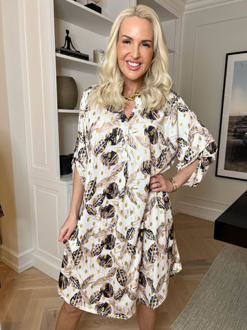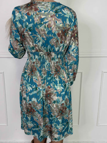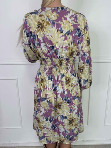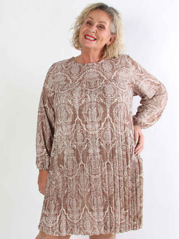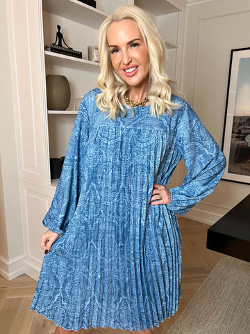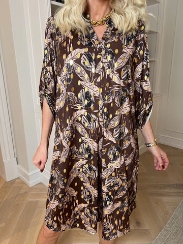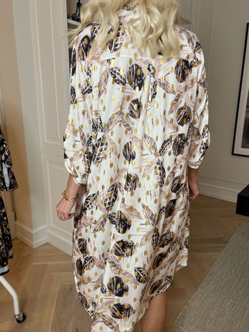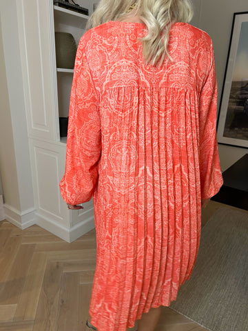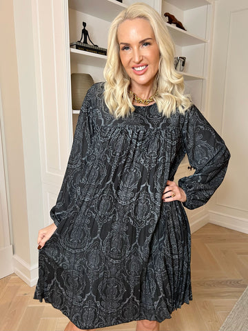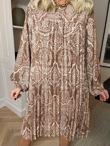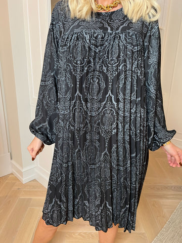 Nancy Royal Short L/S - Mønstret kjole med plisseringer og lommer