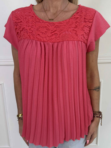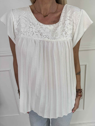 Nancy Lace Shirt - Sød tunika med plisseringer og blonde