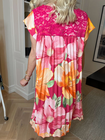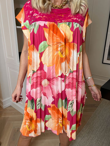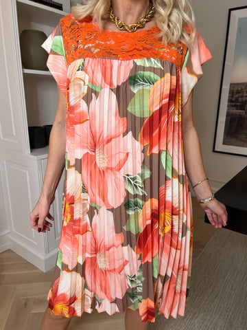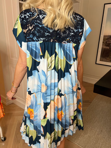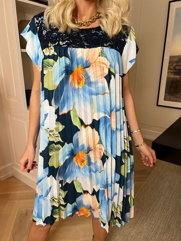Nancy Lace Flower Short - Blomstret kjole med plisseringer og lommer