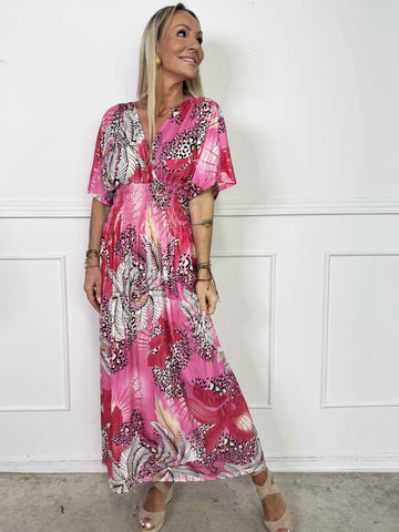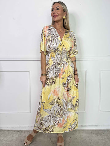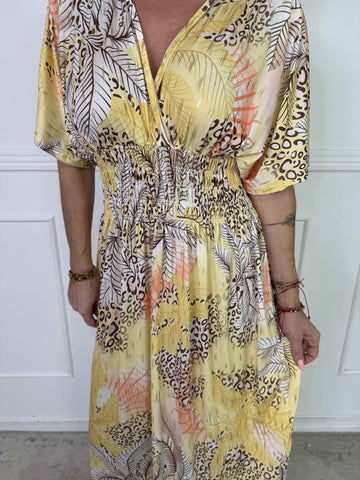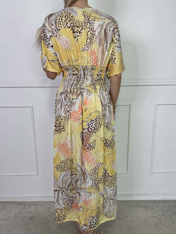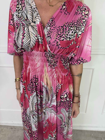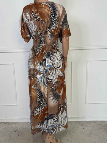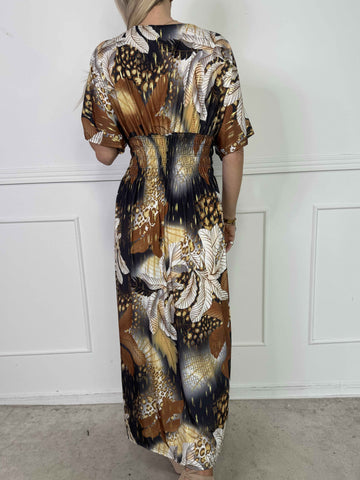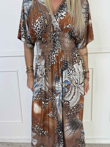 Pams Multi Leo - Lang elastisk kjole med print og guld detaljer