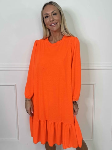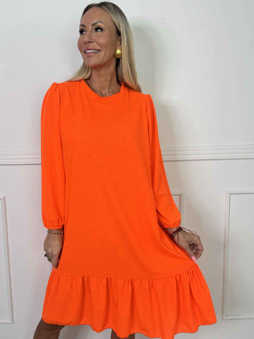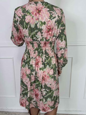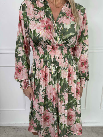 Pams Flora Short L/S - Elastisk kjole i krølfrit stof med lange ærmer