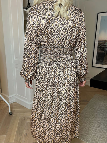 Pams Pattern Midi L/S - Elastisk kjole i krølfrit stof med lange ærmer