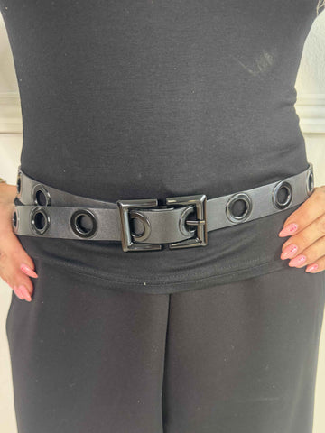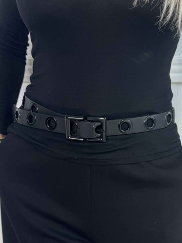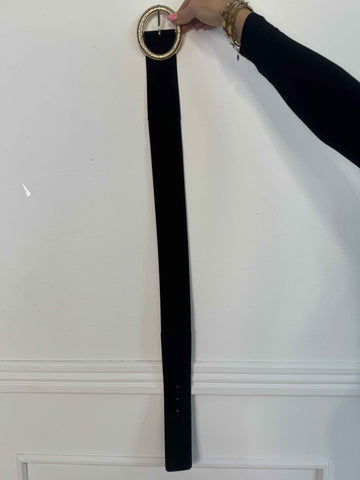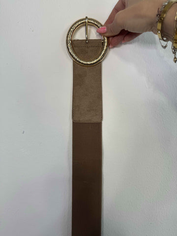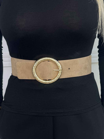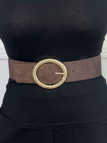 Sybille - Taljebælte i ruskindslook med stort guld spænde