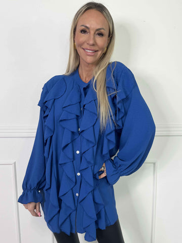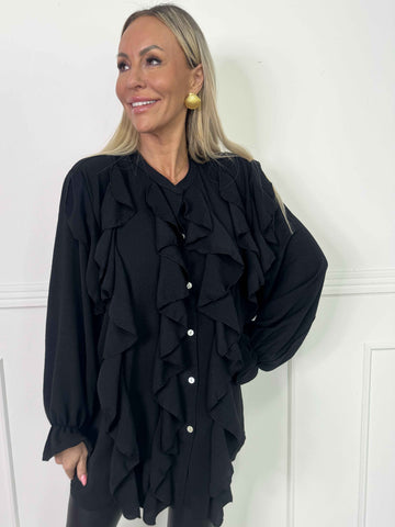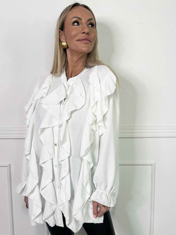 Trudie - Sød skjorte i viskose med fine flæser foran