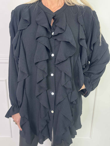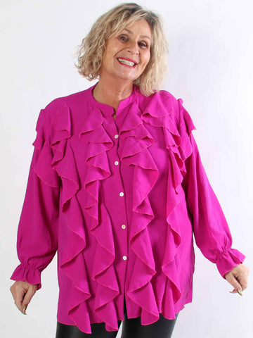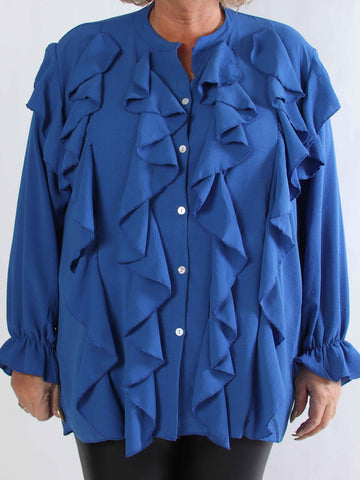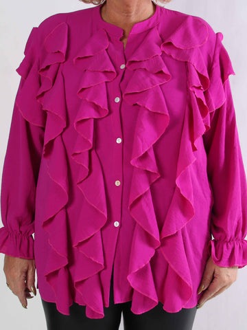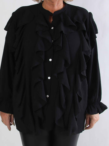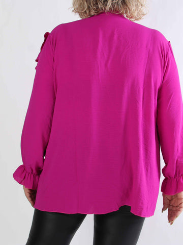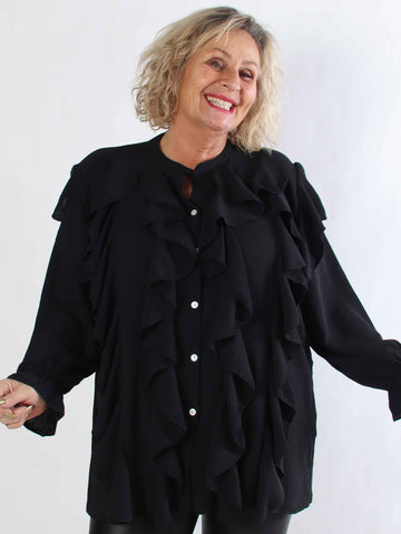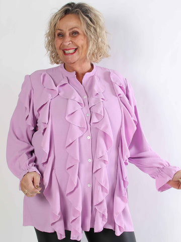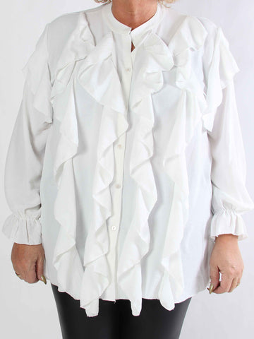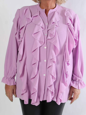 Trudie - Sød plus size skjorte i viskose med fine flæser foran