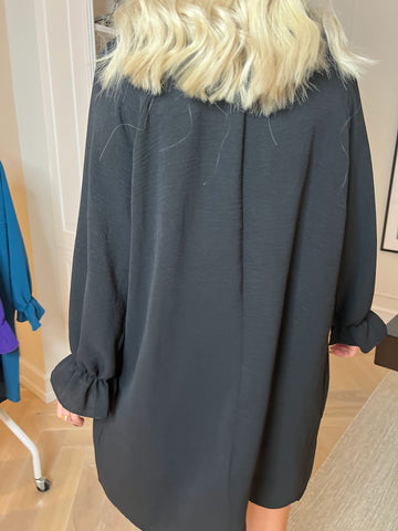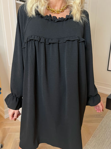 Yanira - Ternet tunikakjole i viskose med fine flæser