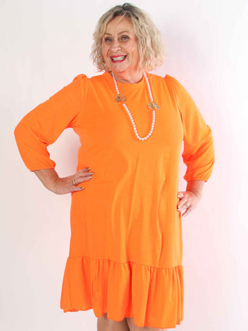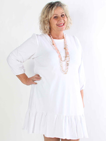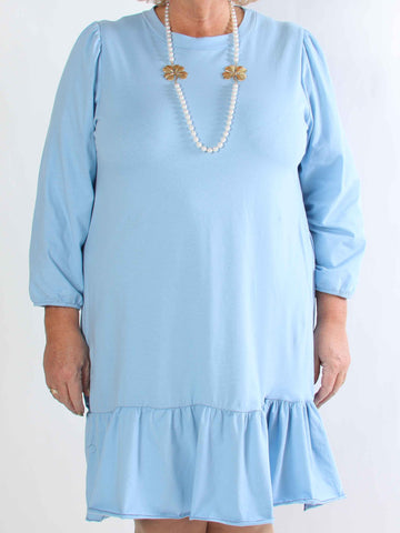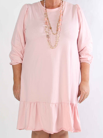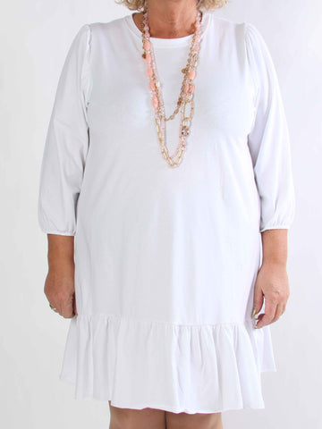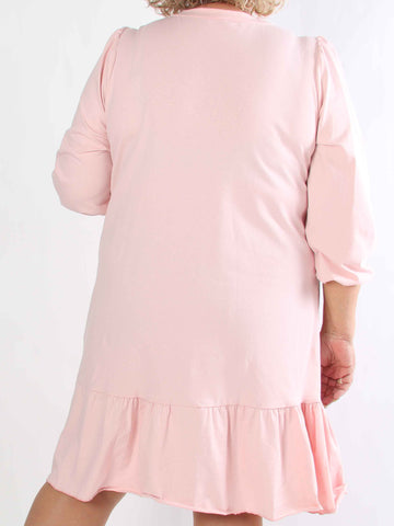 Zafira - Plus size joggingkjole i bomuld med sød flæsekant