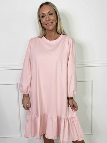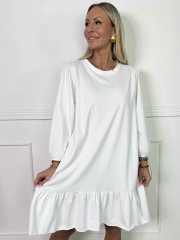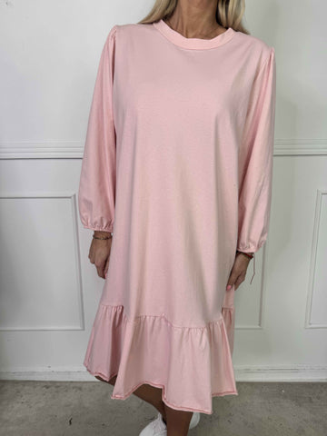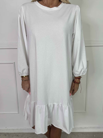 Zafira - Joggingkjole i bomuld med sød flæsekant