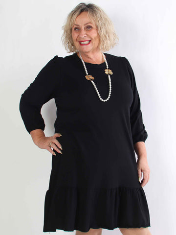 Waleria - Sød plus size kjole i viskose med fine flæsedetaljer